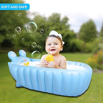 Baby infant inflatable bath tub seat mommy helper kid toddler portable bathtub. The large tub includes an inclined positioner that can be removed as your baby grows. Simply remove the inclined positioner to create a larger bathing area for your older.